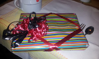 After dessert it was time to open a few gifts. The first gift was a comical, crazy, fun, story gift. It contained old silver shit and we all had a good laugh.