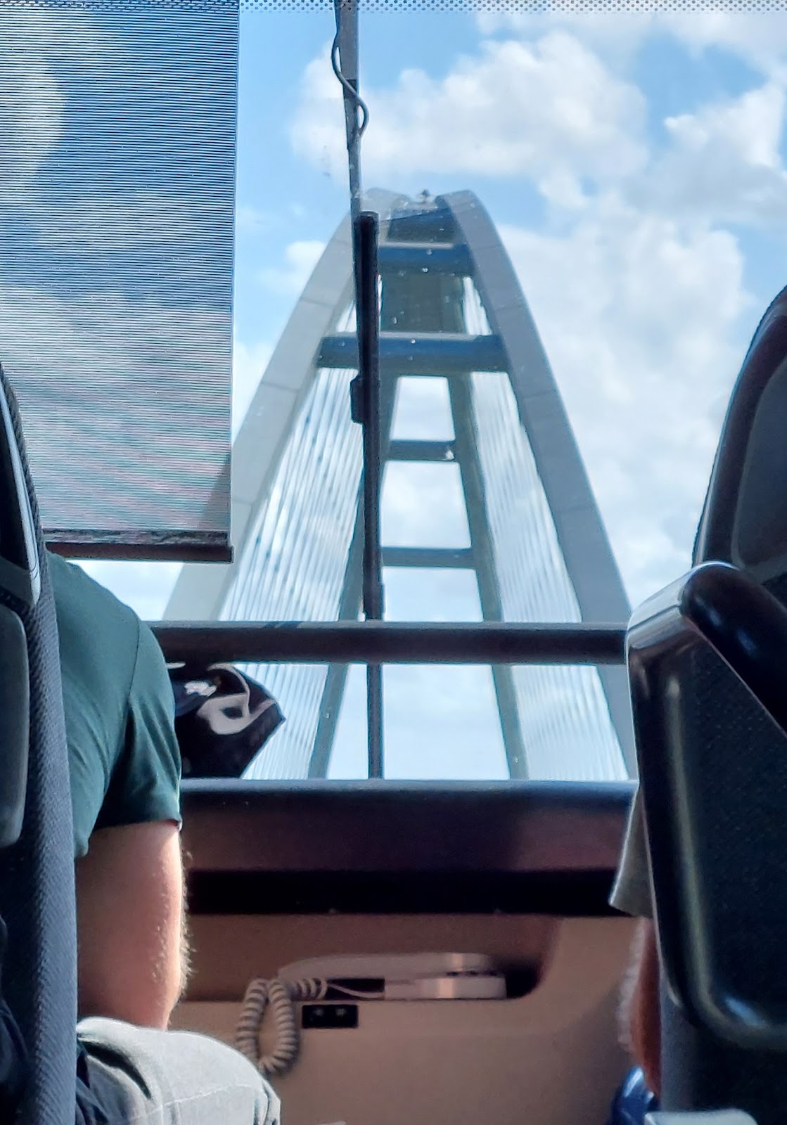 The bus ride was pretty much relaxing and uneventful. Boarding the ferry and crossing a few bridges was the fun part of the ride. The rain, very little traffic (the only hole in the side of the motorway and a driver just happened to crash into it), and stopping for gas, were the mundane travel events.
